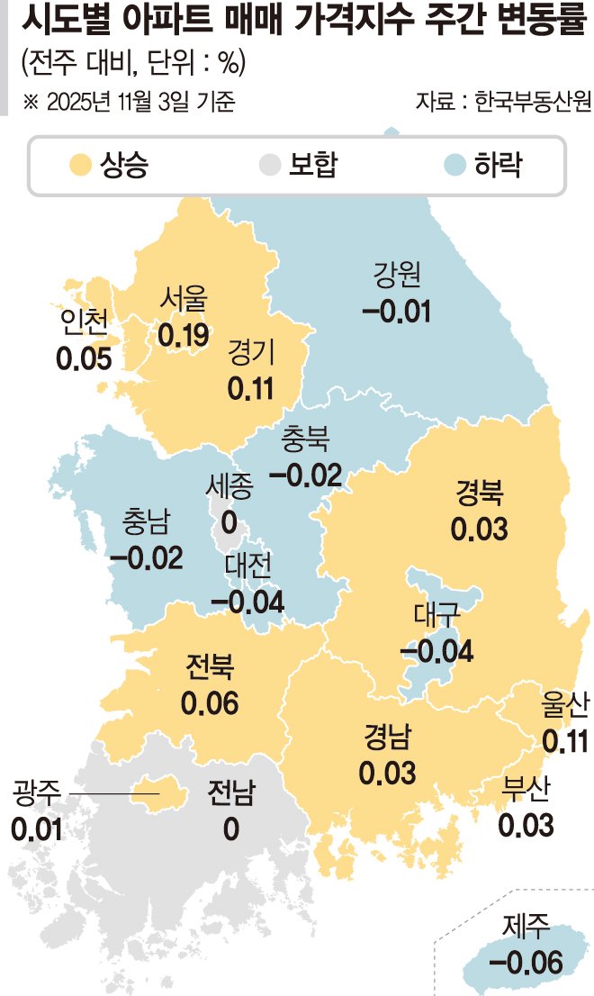 10·15 부동산 대책 이후 서울 아파트값 상승세가 2주 연속 둔화됐다. 다만 경기도 구리·화성 등 규제가 미치지 않는 수도권 일부 지역에서는 풍선효과가 나타나고 있다. 6일 한국부동산원에 따르면 11월 첫째주(3일 기준) 서울 아파트 가격은 0.19% 상승했다. 10·15 대책 발표 이후 조사됐던 지난 10월 넷째주(0.23%)에 비해 상승폭이 더욱 축소됐다.
