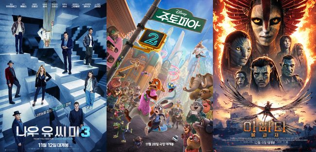 [OSEN=유수연 기자] 올가을 극장가에 가장 강렬하고 놀라운 재미를 선사할 블록버스터 '나우 유 씨 미 3'(감독 루벤 플레셔, 수입 롯데엔터테인먼트, 배급 롯데엔터테인먼트, 바이포엠스튜디오) 부터 '주토피아2', '아바타: 불과 재'까지 할리우드 블록버스터 속편들이 연이은 극장가 출격을 예고한다.