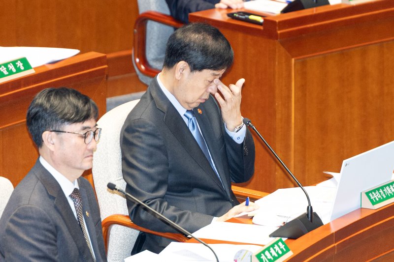구윤철 경제부총리 겸 기획재정부 장관이 6일 서울 여의도 국회에서 열린 제429회국회(정기회) 예산결산특별위원회 제3차 전체회의에서 눈가를 만지고 있다. 뉴스1 |