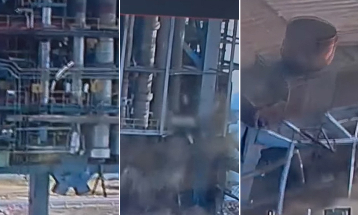 폭격 당한듯… 6일 울산 남구 용잠동 울산화력발전소의 보일러 타워 붕괴 모습. (왼쪽부터) 보일러 타워 구조물이 하단부터 붕괴되며 앞으로 쓰러지고 있다. 소방당국은 이번 사고가 가동이 중단된 발전시설 철거에 앞서 설비가 용이하게 무너지도록 하기 위한 ‘취약화 작업’을 진행하는 과정에서 일어났다고 밝혔다. 연합뉴스TV 캡처 |