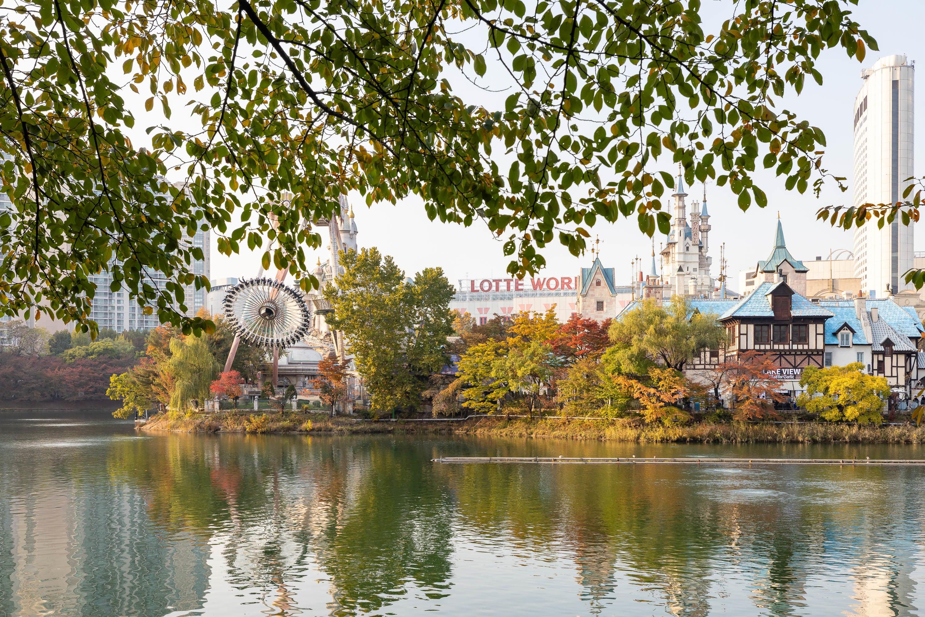 서울 석촌호수 물 위로 붉고 노랗게 물든 단풍나무와 은행나무가 비추고 있다. /뉴스1 |