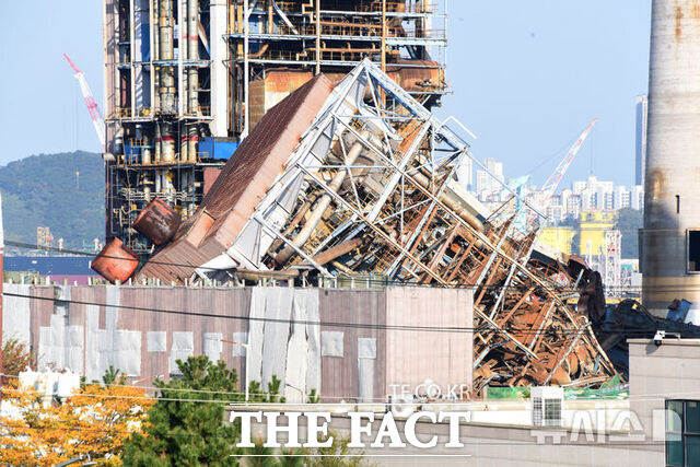 [더팩트ㅣ유연석 기자] 울산 남구 한국동서발전 울산발전본부 내 울산화력발전소에서 60m 높이의 보일러타워가 붕괴되면서 발생한 매몰자 중 1명이 사망했다.