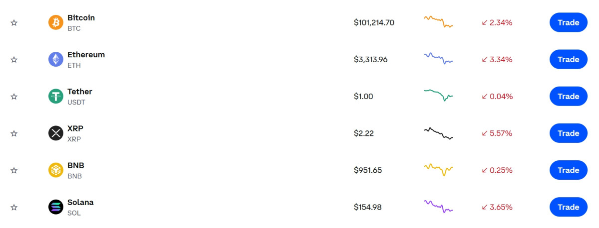 7일(한국시간) 글로벌 가상자산 거래소 코인베이스에 따르면 주요 암호화폐 가격이 일제히 하락세를 보였다.