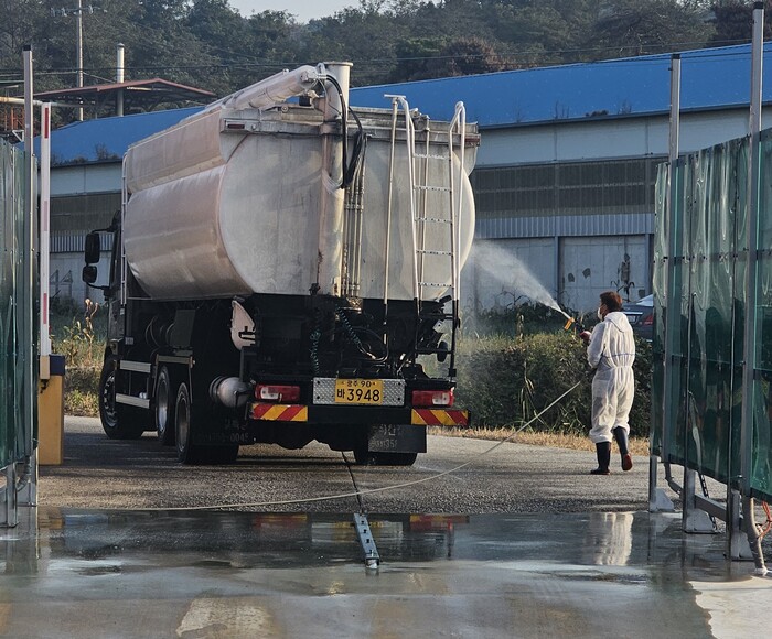 따라서 모든 축산차량은 농장·사료공장·도축장 등 출입 전 반드시 소독을 거치도록 의무화했다.
