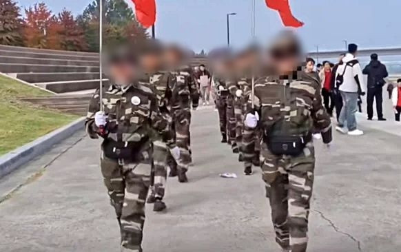 서울 한강공원에서 군복처럼 보이는 옷을 입은 중국인들이 행진하는 모습이 온라인상에 퍼지며 논란이 일고 있습니다.