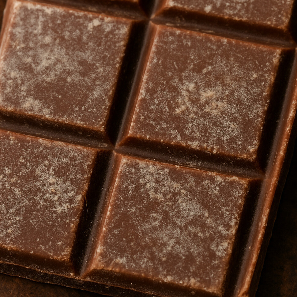 이 현상은 두 가지로 나뉜다. ‘팻블룸’(fat bloom)은 보관 온도가 높거나, 온도 변화가 심할 때 발생한다. 초콜릿 속 카카오버터가 고온에 녹아 표면으로 이동 후 다시 굳으면서 흰 막이 형성된다. 연한 회백색의 막이나 흐릿한 얼룩이 생기고 다소 번들거리는 것처럼 보이기도 한다. 만지면 미끈하거나 왁스처럼 느껴질 수 있다. 손가락의 열이나 휴지로 문지르면 부분적으로 사라지거나 번진다.