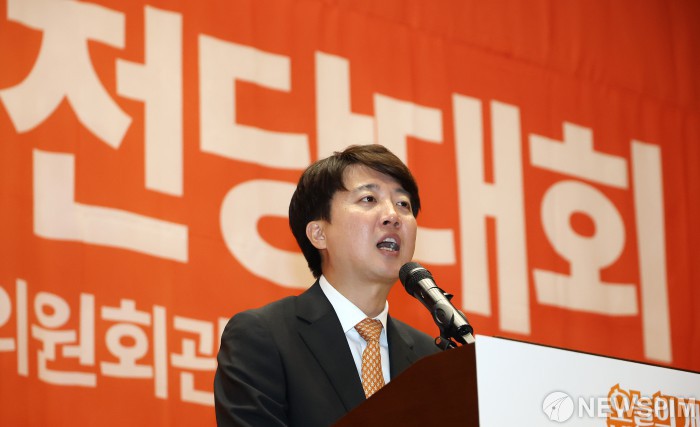 [서울=뉴스핌] 정일구 기자 = 개혁신당 당대표로 선출된 이준석 의원이 27일 오후 서울 여의도 국회 의원회관에서 열린 당대표·최고위원 선출 제2차 전당대회에서 수락연설을 하고 있다. 이날 전당대회에 단독으로 출마한 이 의원은 찬성 2만5254표, 반대 457표를 얻어 98.22%의 득표율로 당대표에 당선됐다. 2025.07.27 mironj19@newspim.com |