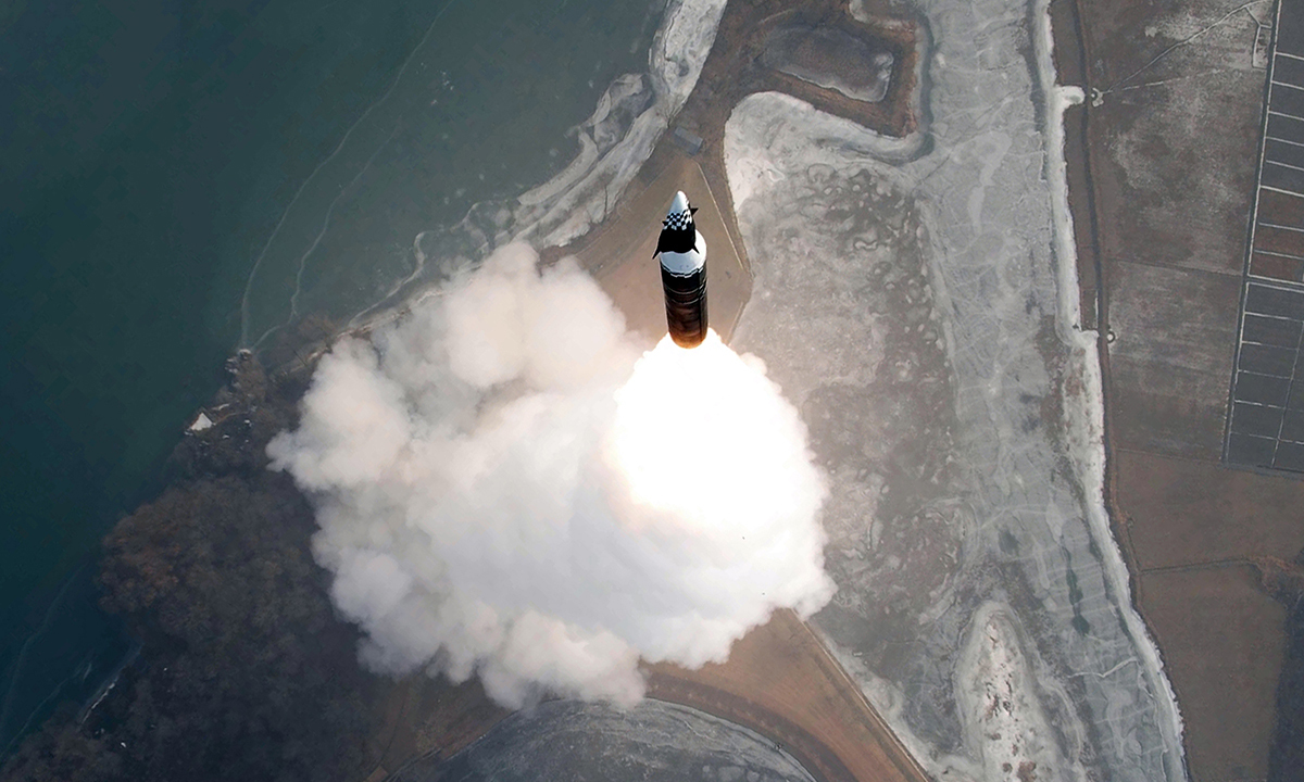 북한 미사일총국이 지난 2025년 1월 6일 신형 극초음속 중장거리 탄도미사일 시험발사를 진행한 모습. 조선중앙통신·연합뉴스 |
