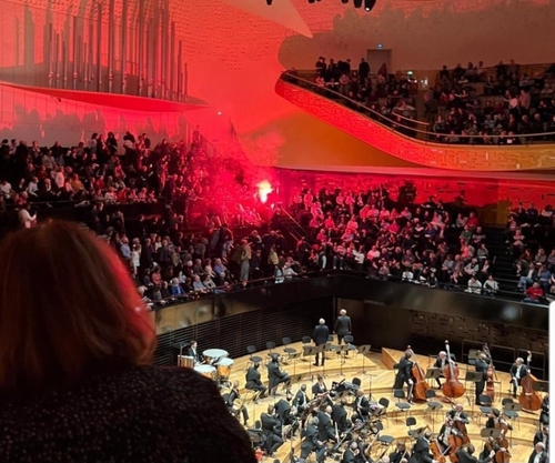 (파리=연합뉴스) 송진원 특파원 = 프랑스 파리에서 열린 이스라엘 오케스트라의 콘서트에서 팔레스타인 지지 활동가들이 연막탄을 동원해 공연을 방해하는 소동이 빚어졌다.