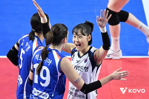 흥국생명전서 여자부 최초 600경기 출전 기록을 작성한 기업은행의 임명옥(중앙) |