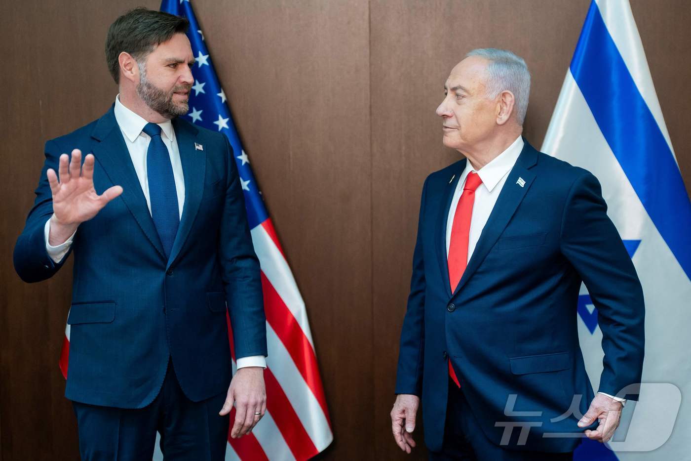 JD 밴스 미국 부통령(왼쪽)과 베냐민 네타냐후 이스라엘 총리. 2025.10.22 ⓒ AFP=뉴스1 |