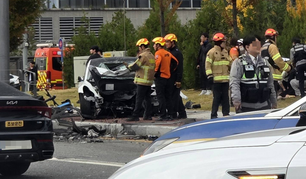 오늘(8일) 오후 2시쯤 대전 유성구 도룡동 한 도로에서 40대 남성이 몰던 테슬라 승용차가 오토바이 한 대와 차량 8대를 들이받았습니다.