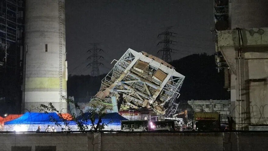 지난 6일 오후 2시2분께 붕괴사고가 발생하면서 높이 60m짜리 보일러 타워의 25m 지점에서 작업하던 노동자 7명이 매몰됐다. 이 가운데 사망자는 3명, 사망추정 2명, 실종자 2명이다. 사망 또는 사망추정 희생자 가운데는 2구의 주검만 수습했다.