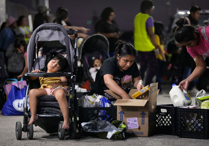 [오스틴=AP/뉴시스] 지난 4일(현지 시간) 미 텍사스주 오스틴의 푸드뱅크에서 한 여성이 유모차에서 자고 있는 딸과 함께 식료품을 받고 있다. 연방정부 셧다운(업무 일시 중단)이 장기화하면서 저소득층 대상 식비 지원 프로그램(SNAP) 지원이 중단된 후 식료품 배급 수요가 급증하고 있다. 2025.11.8. |