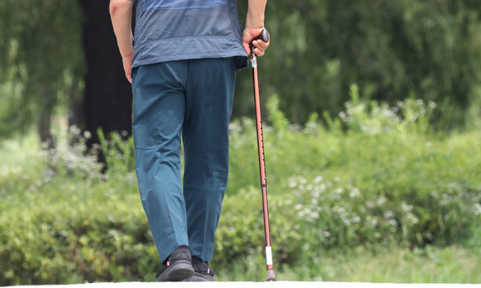 한 공원에서 어르신이 걸어가고 있다. 뉴스1 |