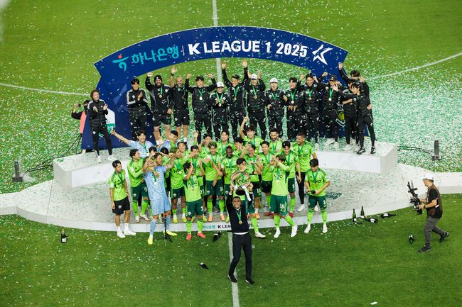 전북 현대는 8일 오후 4시 30분 전주월드컵경기장에서 열린 하나은행 K리그1 2025 36라운드에서 대전 하나시티즌을 3-1로 꺾었다. 일찌감치 조기 우승을 확정한 전북은 승점 75(22승 9무 5패)가 됐다.