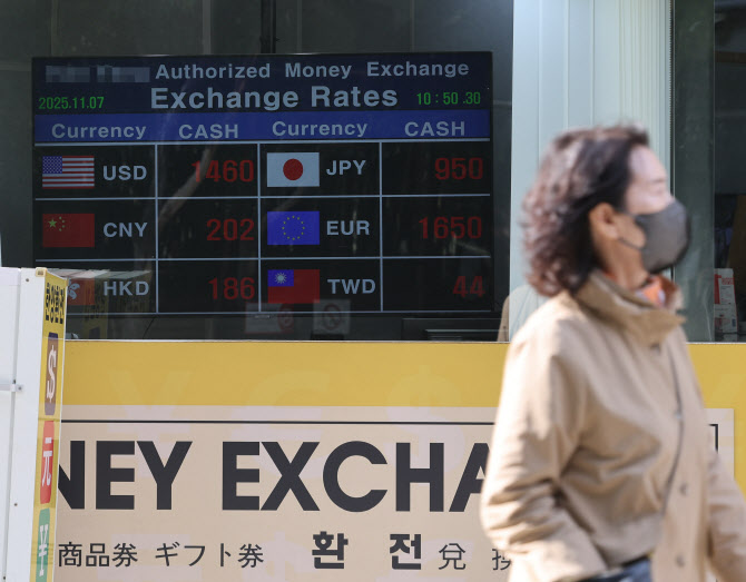 7일 원·달러 환율이 미국 고용시장 냉각 우려에 따른 위험회피 심리로 장 초반 1450원대로 오른 가운데 서울 중구 명동의 한 환전소에 현재 환율이 표시되어 있다. (사진=연합뉴스) |