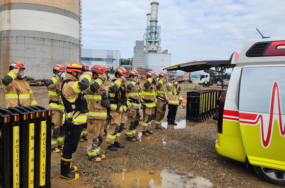 소방당국에 따르면 구조대원들이 직접 현장 잔해를 파헤치며 진행하는 구조·수색 활동은 전날 오후 5시 25분부터 중단됐다. 무너진 보일러 타워 5호기에 부착된 기울기 센서에서 붕괴 등 위험 가능성을 알리는 경보음이 울리면서다.