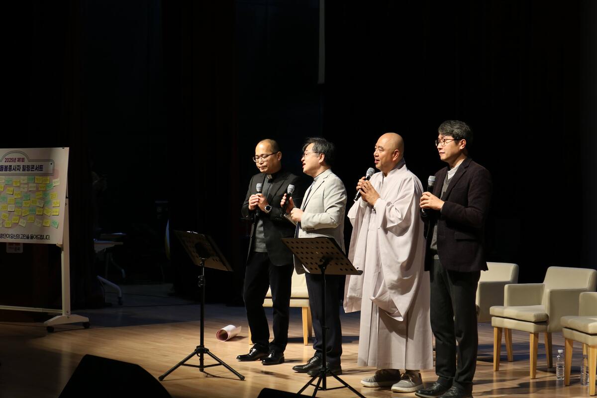 만남중창단의 성진 스님은 한 질문에 대한 답변에서 “가족처럼 이웃을 돌보는 그 마음 자체가 이미 존귀한 수행”이라고 격려의 말을 건네고, “마음의 공덕을 쌓는다는 생각으로 자신을 칭찬하고, 아껴달라”고 말해 호응을 얻었다.