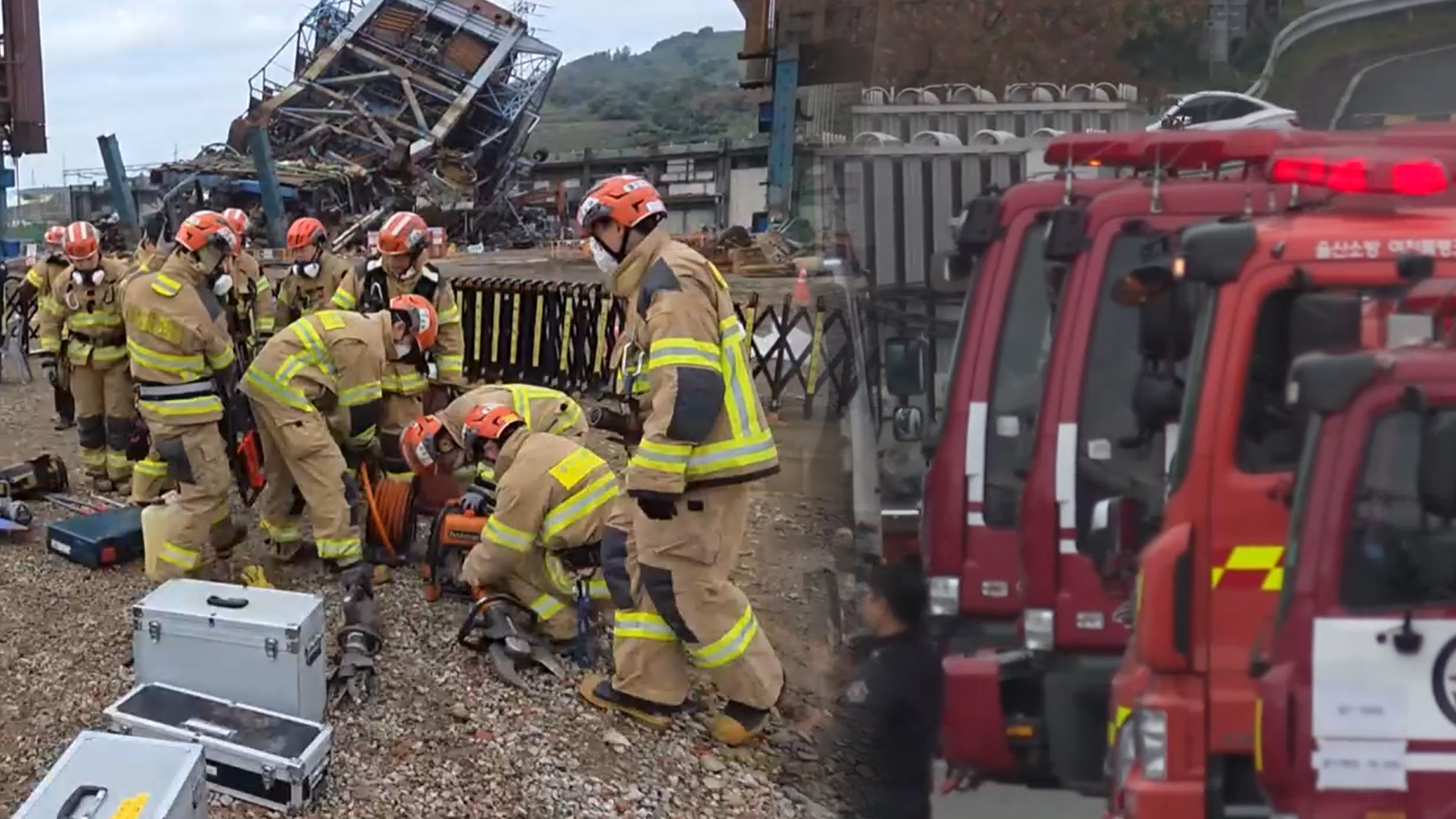 네, 울산 화력발전소 보일러타워 붕괴사고 현장입니다.