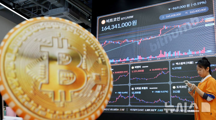 [서울=뉴시스] 김진아 기자 = 동반 강세를 펼쳤던 비트코인과 이더리움이 미국 7월 소비자물가지수(CPI) 발표에 대한 경계감에 횡보세를 나타내고 있는 12일 서울 강남구 빗썸라운지에 전광판에 비트코인 등 가상화폐 시세가 나오고 있다. 2025.08.12. bluesoda@newsis.com |
