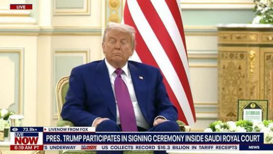 사우디아라비아를 방문 중인 도널드 트럼프 미국 대통령이 생중계된 공식 행사에서 조는 듯한 모습이 목격됐다. 폭스뉴스 캡처 |