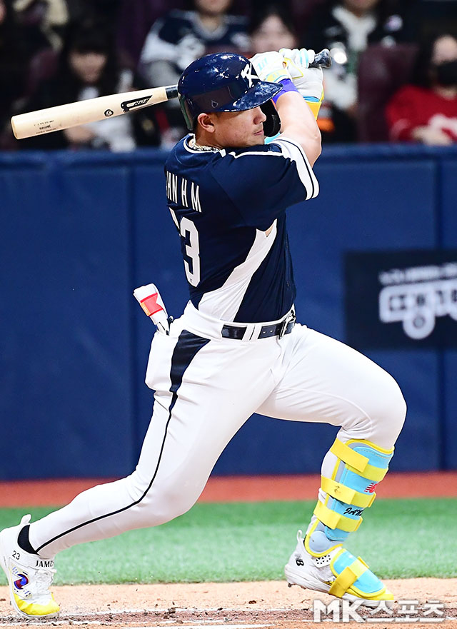 3회초 1사에서 대표팀 안현민이 내야안타를 치고 있다.