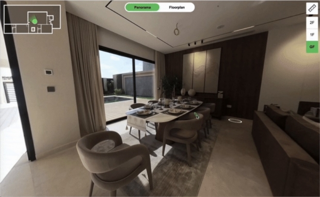 네이버랩스에서 구현한 사우디아라비아 쿠잠 지역의 ‘VR 매물투어’ 예시. 건물 내부를 360도 카메라로 촬영해서 올리면 공간 내부를 입체적으로 볼 수 있다. 네이버랩스 |