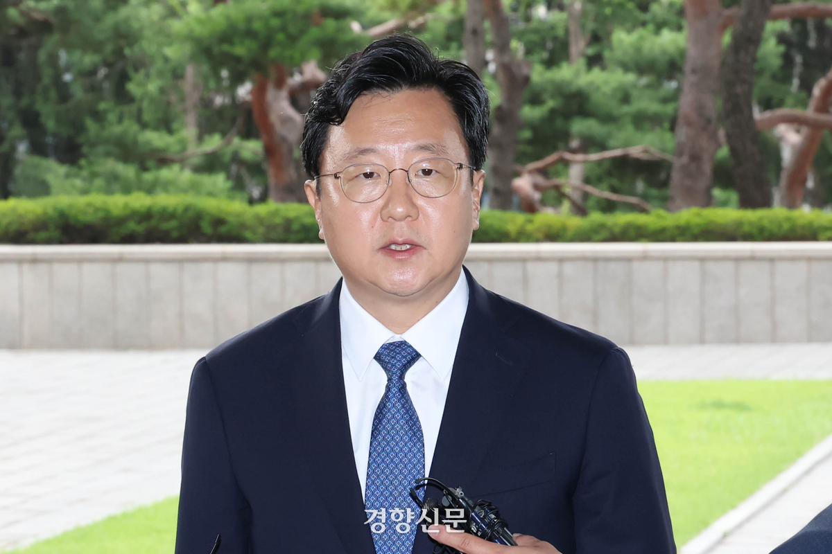 정진우 서울중앙지검장이 지난 7월4일 서울 서초구 서울중앙지검에 첫 출근을 하며 취재진들 질문에 답하고 있다. 성동훈 기자 |