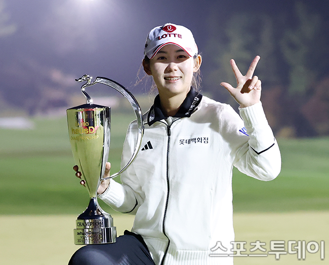 [파주(경기)=스포츠투데이 권광일 기자] 2025 KLPGA 투어 최종전 '대보 하우스디 챔피언'(총상금 10억 원, 우승상금 2억 5000만 원) 최종라운드 경기가 9일 경기 파주시 서원힐스CC(파72 / 6556야드)에서 열렸다. 황유민이 4차 연장끝에 최종합계 11언더파 205타로 우승을 차지하고 있다. 2025.11.09.
