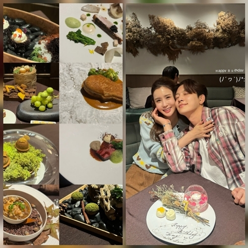 사진 속 이다해는 세븐의 어깨에 팔을 두르고 다정하게 미소 짓고 있다. 테이블 위에는 ‘Happy Birthday’ 레터링 장식과 케이크, 고급 디너 코스가 차려져 있어 두 사람의 따뜻한 분위기를 더했다.