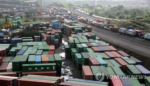 인도 뭄바이 외곽에 쌓인 화물 컨테이너들 |