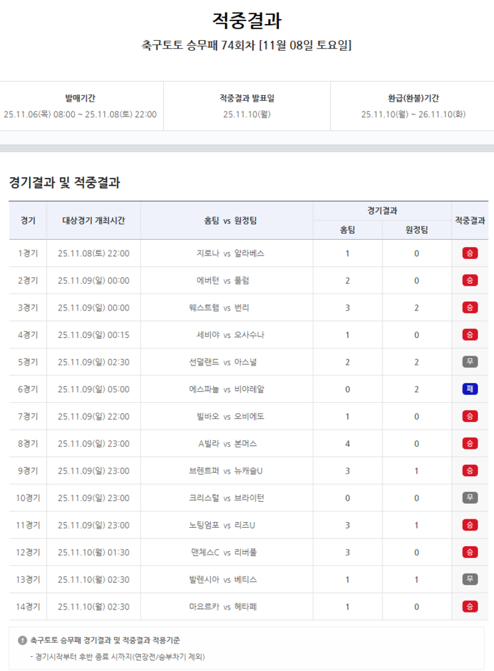 축구토토 승무패 74회차 적중결과. 사진 | 한국스포츠레저 |