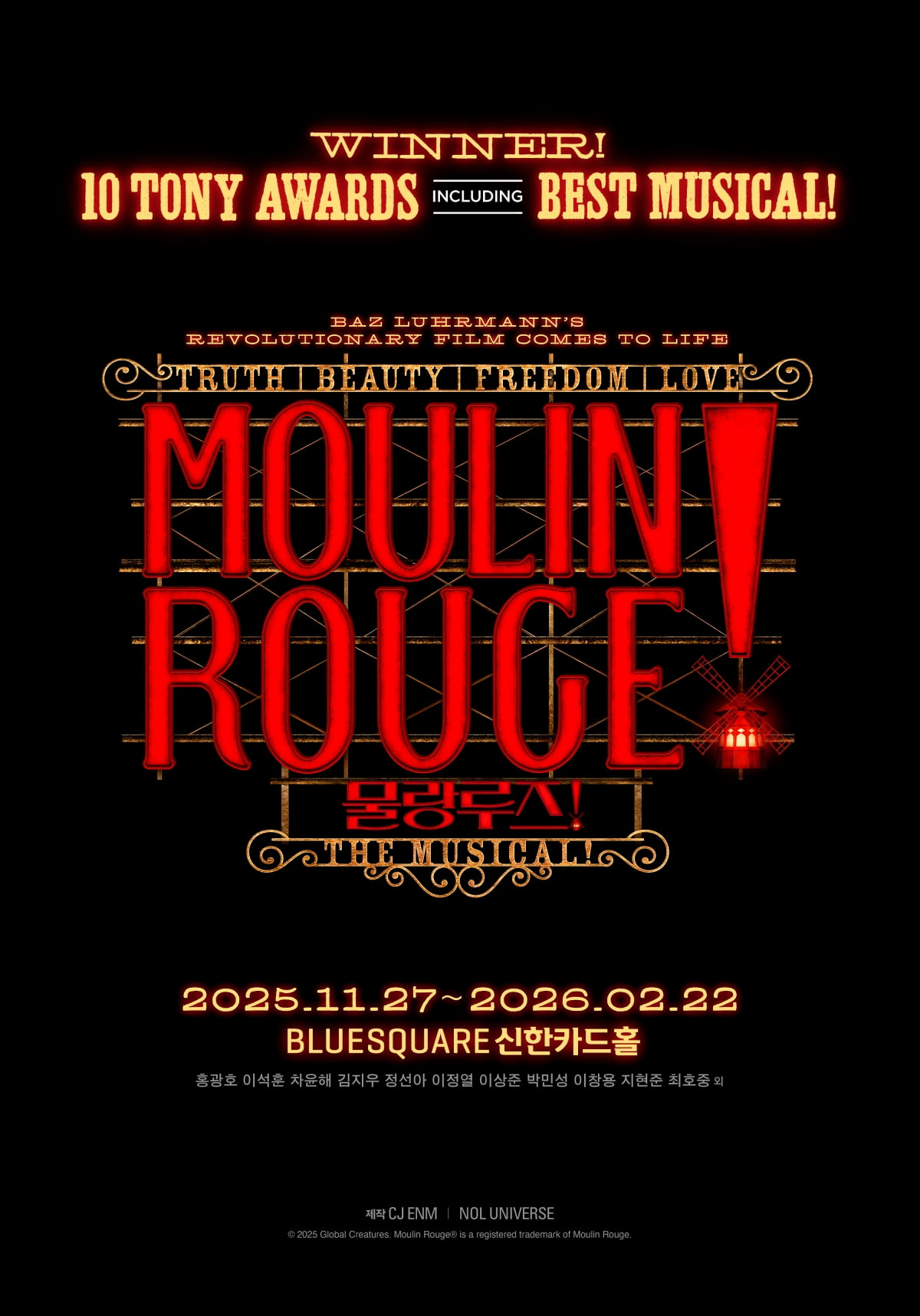 오는 27일 개막하는 뮤지컬 '물랑루즈'는 2001년 개봉한 바즈 루어만 감독의 동명 영화를 원작으로 한다. 최고의 스타 '사틴'과 무명 작곡가 '크리스티안'의 운명적 만남과 헤어 나올 수 없는 사랑 그리고 '몬로스'와 엇갈린 관계를 거울처럼 비추는 삼각관계를 다룬 작품이다.