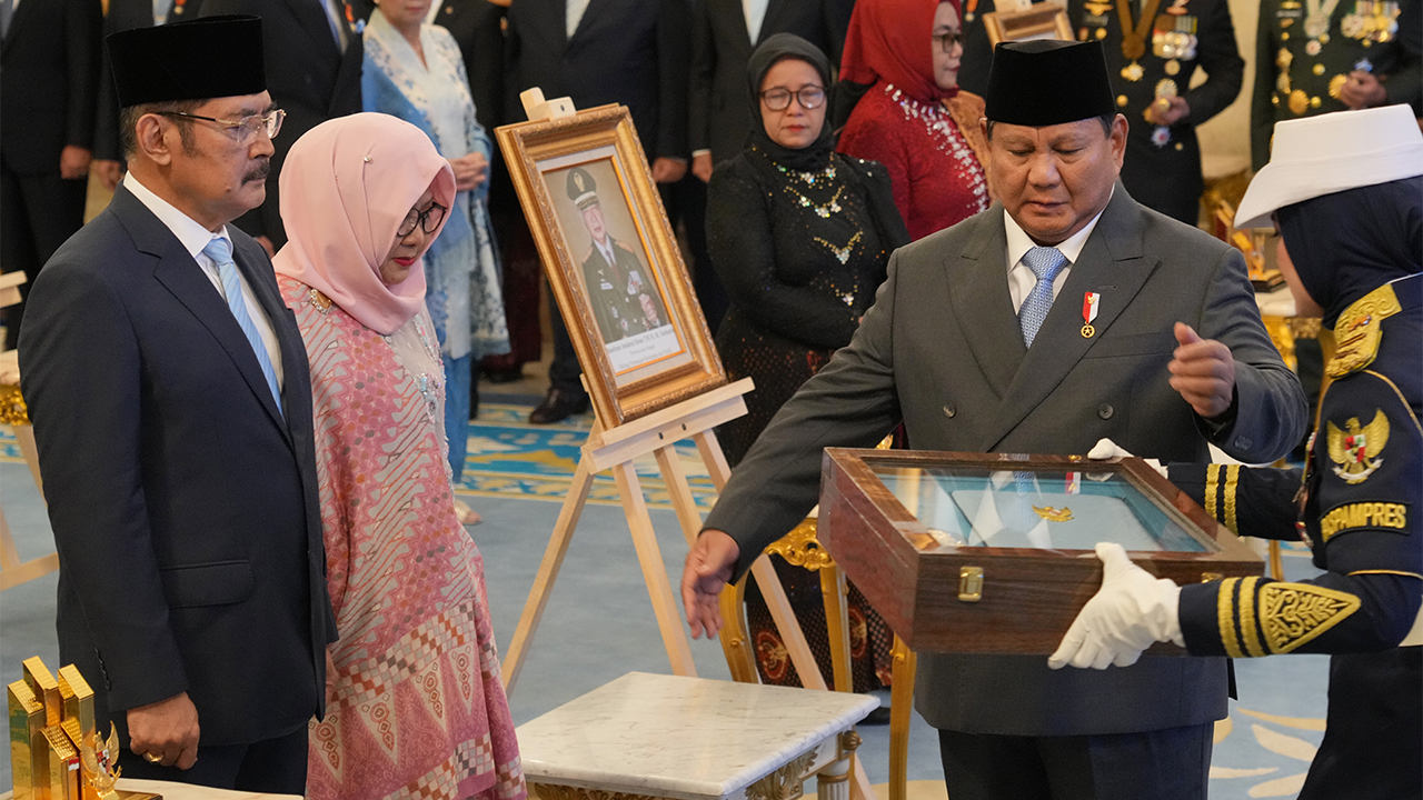▲ 수하르토 유족에 '국가영웅' 기념패 주는 프라보워 수비안토 인도네시아 대통령