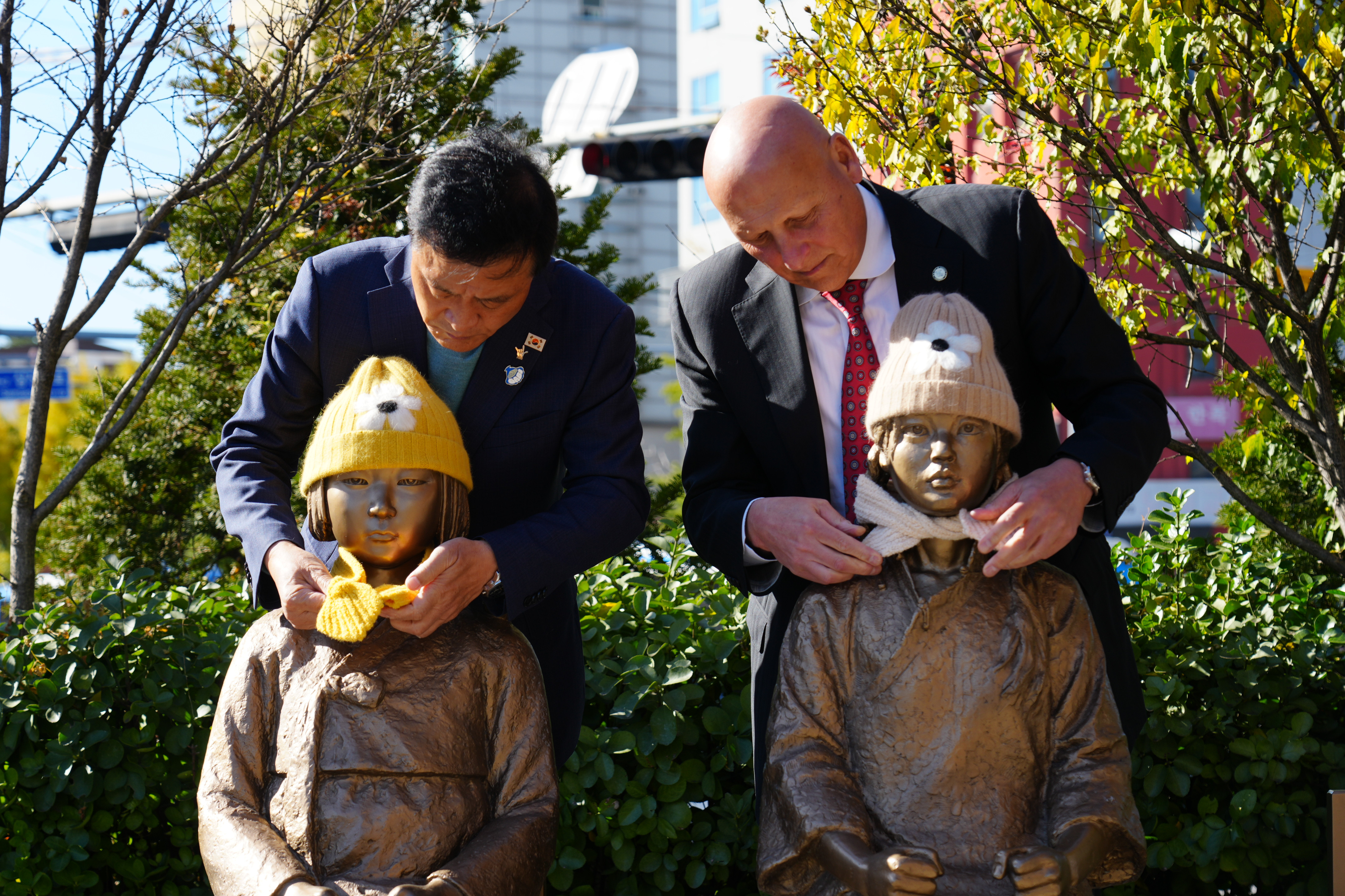 이 청장은 "평화의 소녀상이 전하는 아픔과 인권의 메시지를 늘 마음에 새기고 있으며, 소녀상이 춥지 않도록 작은 온정을 전하고 싶었다"며 "앞으로도 양 도시가 힘을 모아 인권과 인간의 존엄성을 상징하는 평화의 소녀상을 함께 지켜나가길 기대한다"고 밝혔습니다.