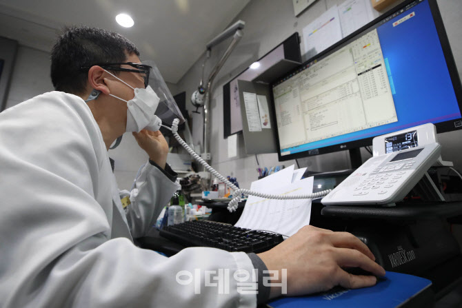 지난 2023년 서울 중구 보아스 이비인후과병원에서 오재국 원장이 코로나19 확진판정을 받은 환자에게 전화를 걸어 비대면 진료를 보고 있는 모습.(사진=뉴시스) |