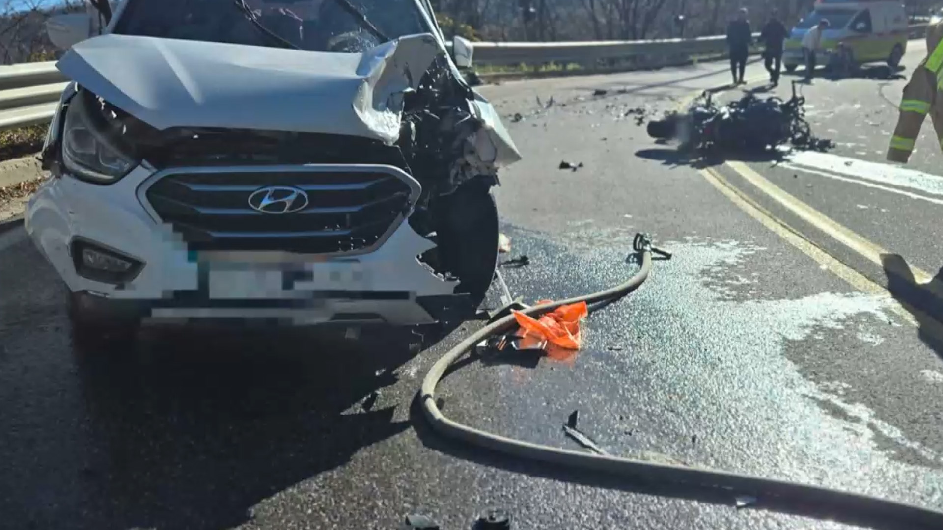 오늘(10일) 오후 1시 4분쯤 강원도 강릉시 성산면 대관령옛길 표지석 인근 도로에서 오토바이와 SUV 차량이 충돌하는 사고가 발생했습니다.
