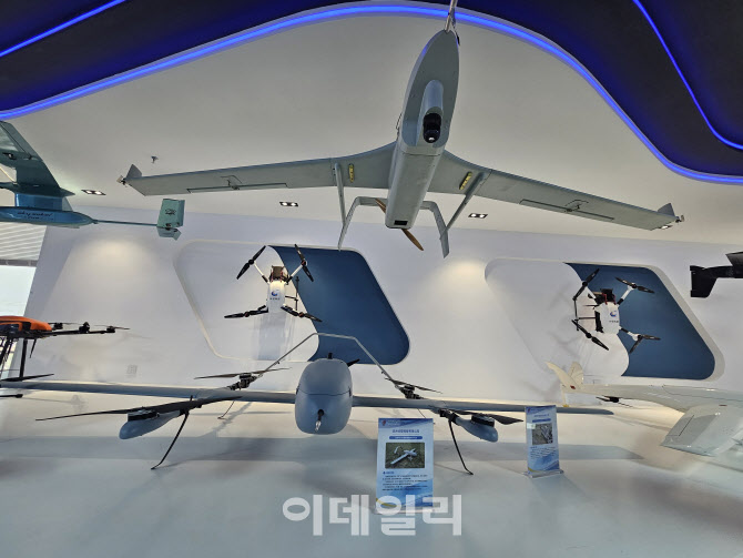 중국 동부 산둥성 빈저우의 저고도 비행 서비스 센터 내 드론과 항공기들이 전시돼있다. (사진=이데일리 이명철 특파원) |