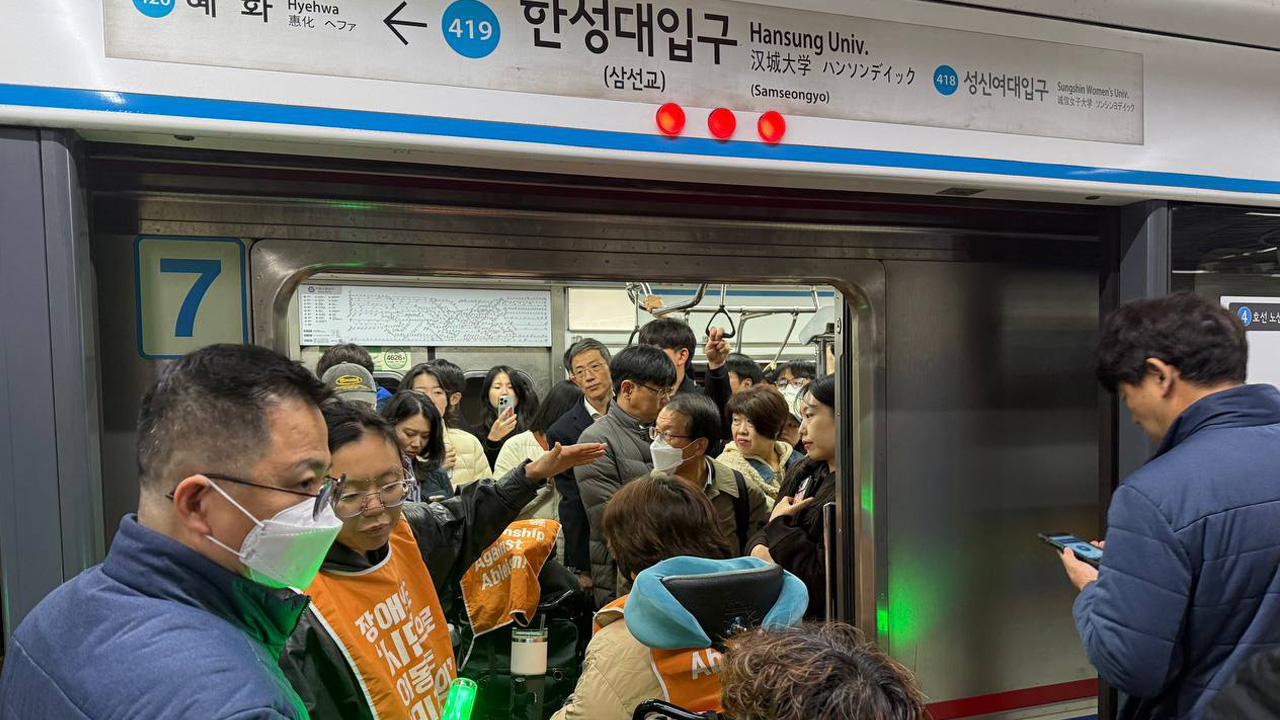 ▲ 한성대입구역에서 탑승 시위 중인 전국장애인차별철폐연대(전장연)