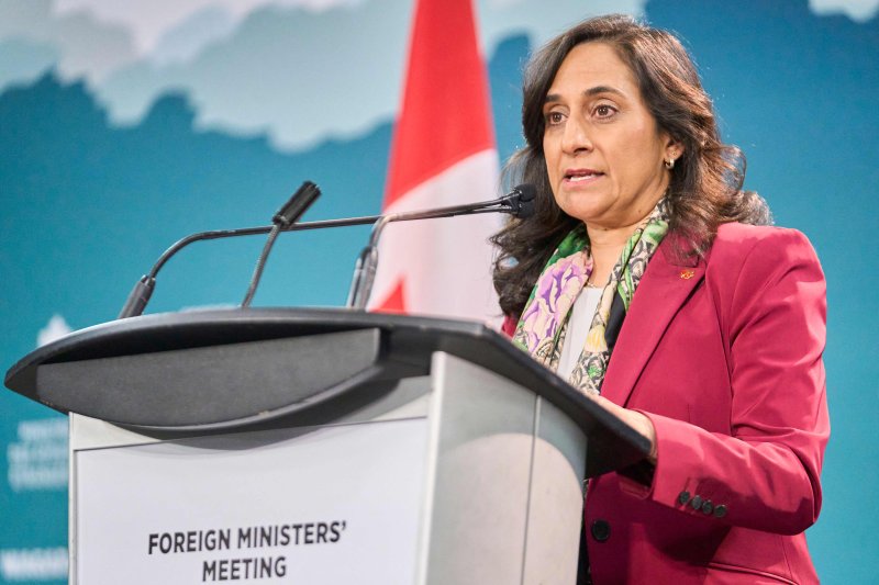 캐나다 온타리오주 나이아가라온더레이크에서 열리는 G7 외교장관 회의 중 아니타 아난드 캐나다 외무장관이 취재진에게 발언하고 있다. 사진=AFP연합 |
