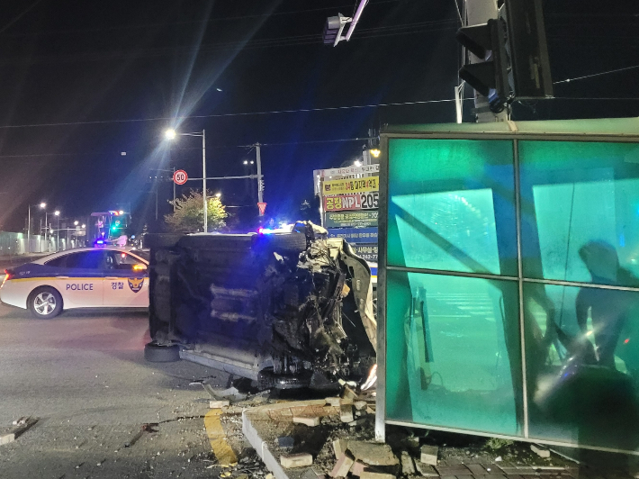 사고 충격으로 A씨 차량이 옆으로 넘어졌지만 다친 사람은 없었다.