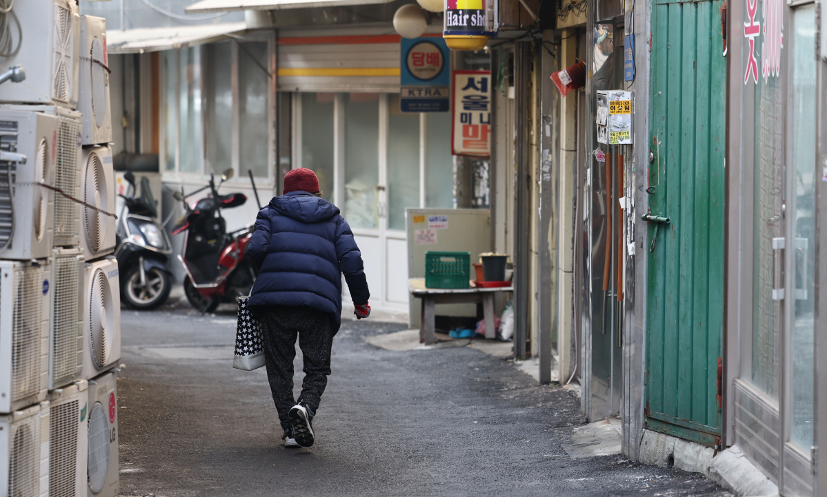 서울 종로구 창신동 쪽방촌 골목에서 어르신이 이동하고 있다. |