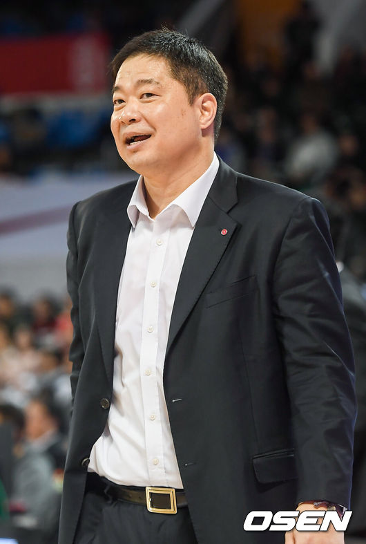 [OSEN=잠실학생체,박준형 기자] 19일 오후 서울 잠실학생체육관에서 2019-2020 프로농구 서울 SK와 창원 LG의 경기가 진행됐다.2쿼터 LG 현주엽 감독이 미소 짓고 있다. / soul1014@osen.co.kr |