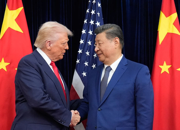 6년 4개월 만 도널드 트럼프 미국 대통령(왼쪽)과 시진핑 중국 국가주석이 지난 10월30일 부산 김해국제공항 나래마루에서 정상회담을 하기에 앞서 악수하고 있다. AP연합뉴스 |
