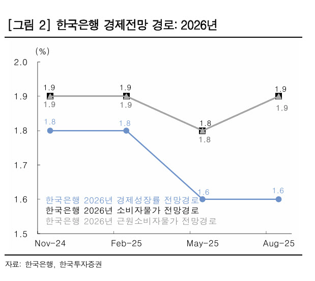 이어 “1.8%까지 상향조정한다 하더라도 2026년 성장갭률은 소폭 마이너스임을 감안할 때, 향후 기준금리 인하 가능성은 여전히 열어둘 것”이라고 내다봤다.