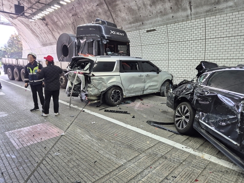 (공주=연합뉴스) 강수환 기자 = 12일 오후 2시 14분께 충남 공주 정안면 천안논산고속도로 상행선 차령터널 안에서 다중추돌사고가 발생해 14명이 다쳤다.