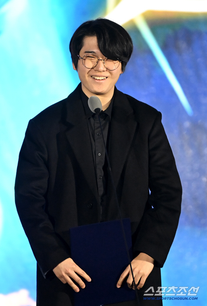 2025 대한민국 게임대상이 12일 부산 벡스코에서 열렸다. 인디게임상을 수상한 '셰이프 오브 드림즈'의 제작사 리자드 스무디의 심은섭 대표가 수상소감을 말하고 있다. 부산=허상욱 기자wook@sportschosun.com/2025.11.12/