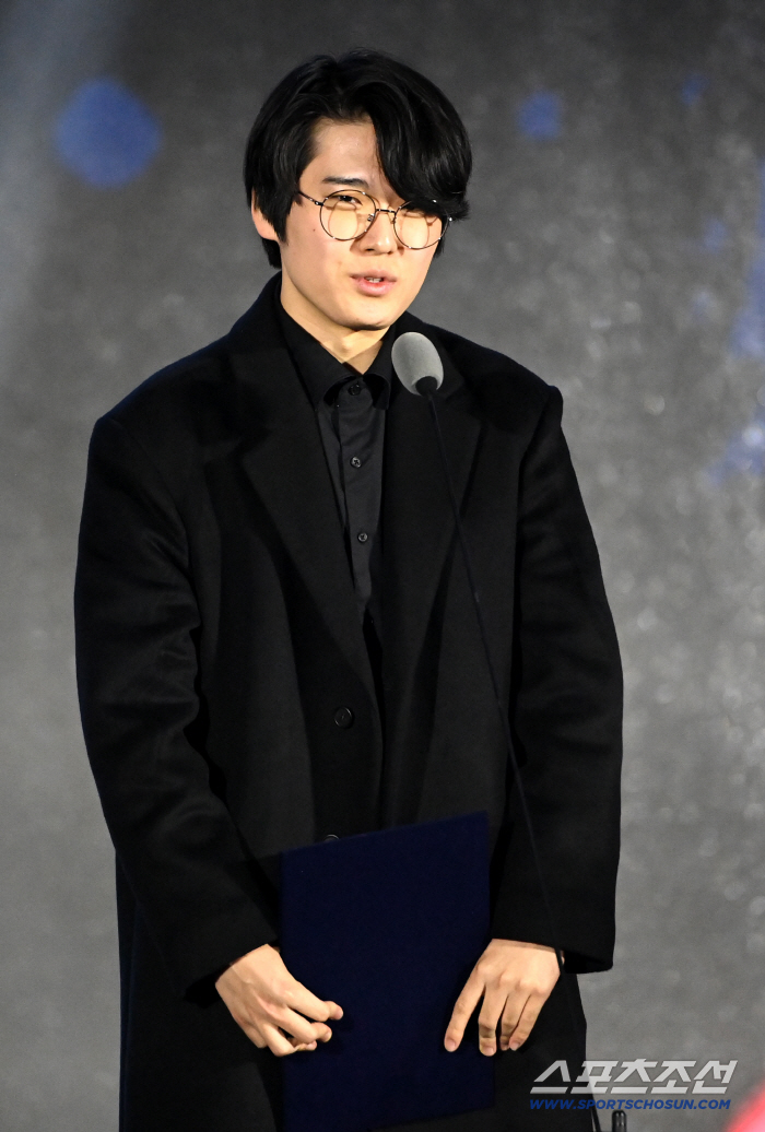 2025 대한민국 게임대상이 12일 부산 벡스코에서 열렸다. 우수개발자상을 수상한 '셰이프 오브 드림즈'의 제작사 리자드 스무디의 심은섭 대표가 수상소감을 말하고 있다. 부산=허상욱 기자wook@sportschosun.com/2025.11.12/ |