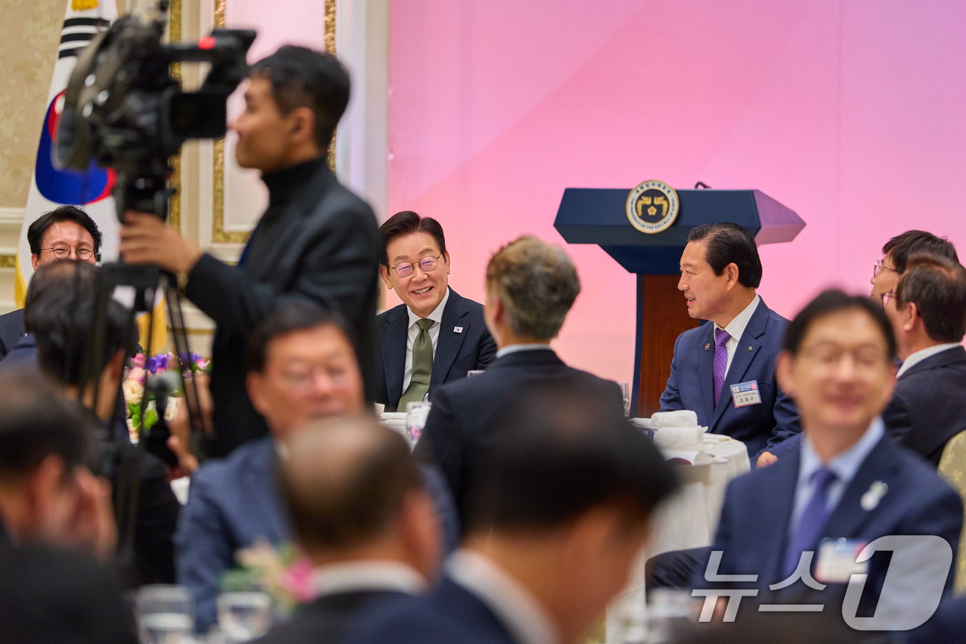 (서울=뉴스1) 허경 기자 = 이재명 대통령이 12일 청와대 영빈관에서 열린 시장·군수·구청장 초청 국정설명회에서 참석자들과 대화하고 있다. (대통령실 제공. 재판매 및 DB 금지) 2025.11.12/뉴스1